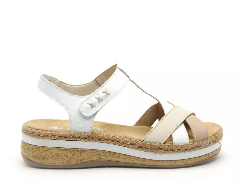 Rieker V0919 Blanc Sandales à Talons Femme